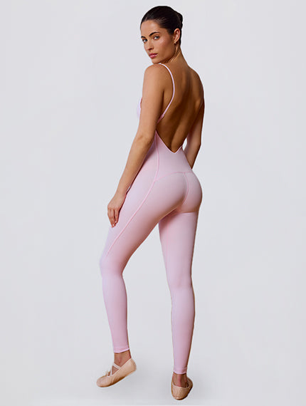 Soft Active Backless Contrast Unitard in Powder Pink